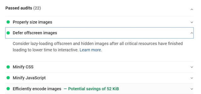 - Run the Lighthouse test and you should be able to pass the “Defer Offscreen Images” test.
