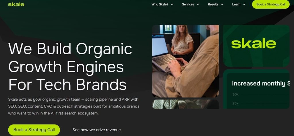 - Focuses on business results, not vanity metrics: Many agencies count ranking positions or traffic as success. Skale targets real metrics like new product sign-ups and ARR (annual recurring revenue).