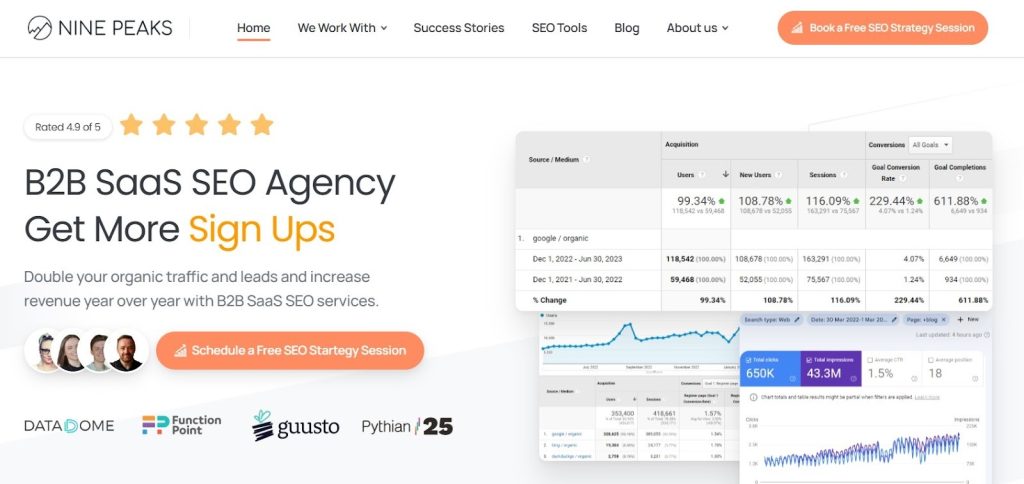Nine Peaks Media focuses on helping B2B SaaS, tech, software and IT companies improve their organic search visibility, lead generation, and recurring revenue.