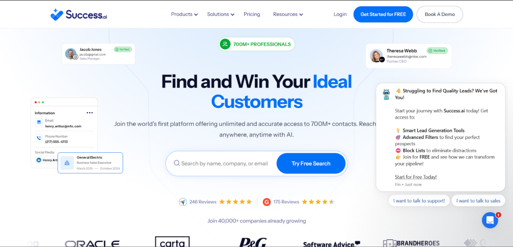 Success.AI is built for teams that prioritize speed and volume in lead sourcing and outreach.